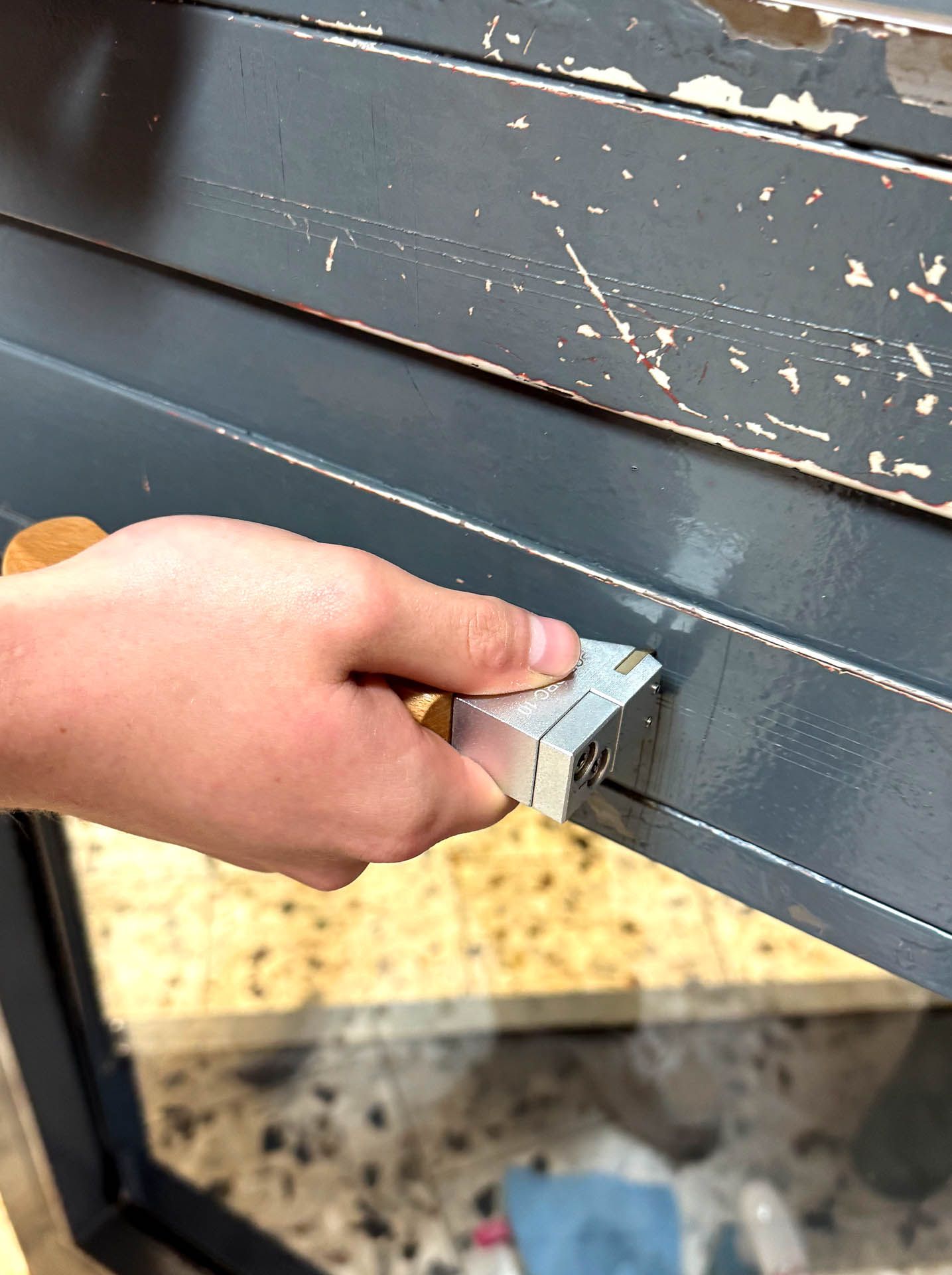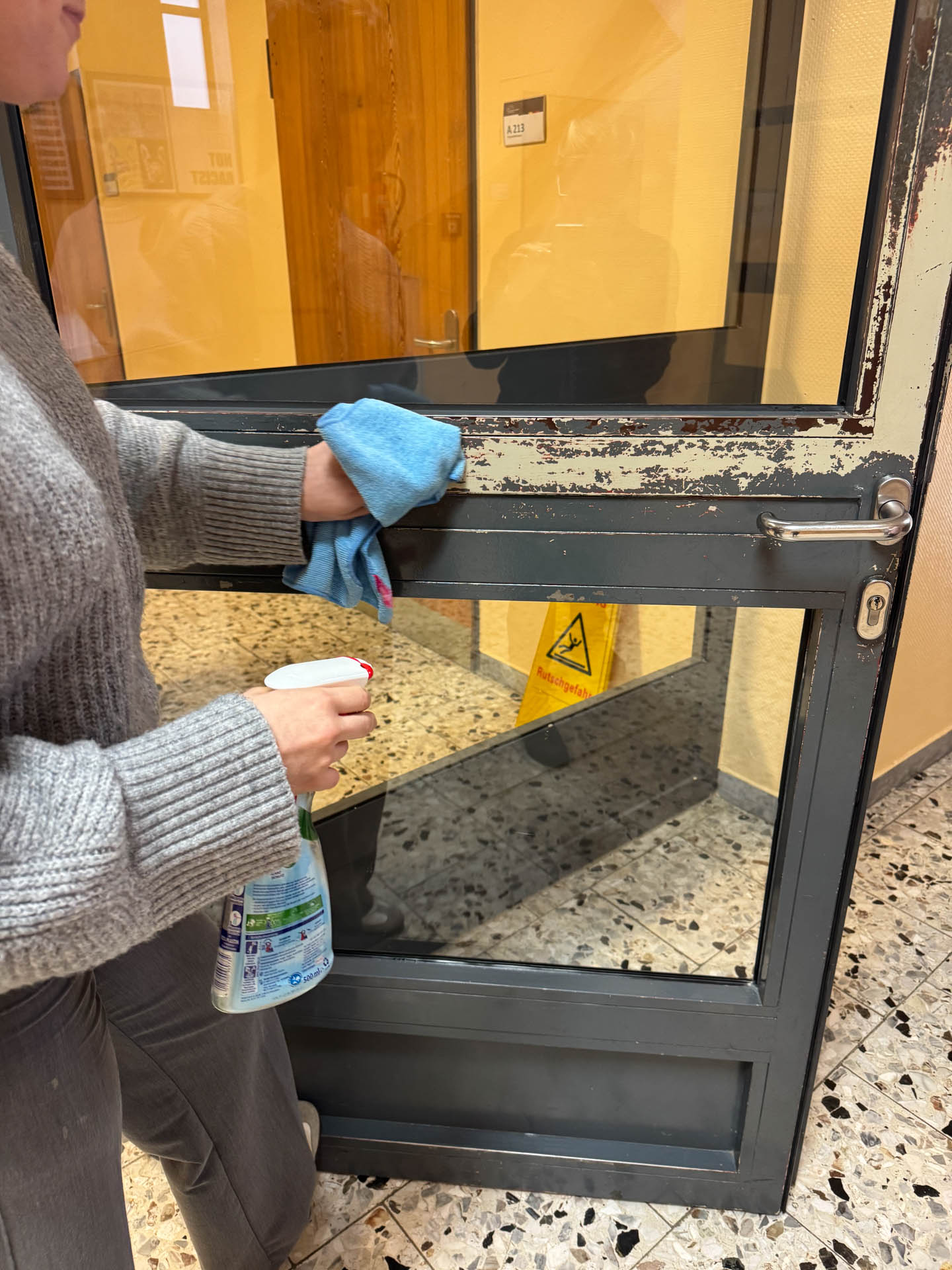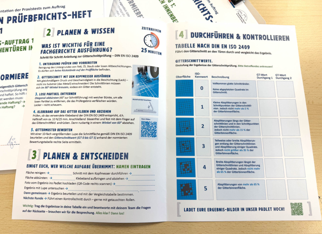 In einem handlungsorientierten Unterrichtsprojekt untersuchten die Lernenden Türflächen mit sichtbaren Gebrauchsspuren. Mithilfe der Gitterschnittprüfung nach DIN EN ISO 2409 ermittelten sie die Haftfestigkeit und Trennbeständigkeit der vorhandenen Lackschichten.