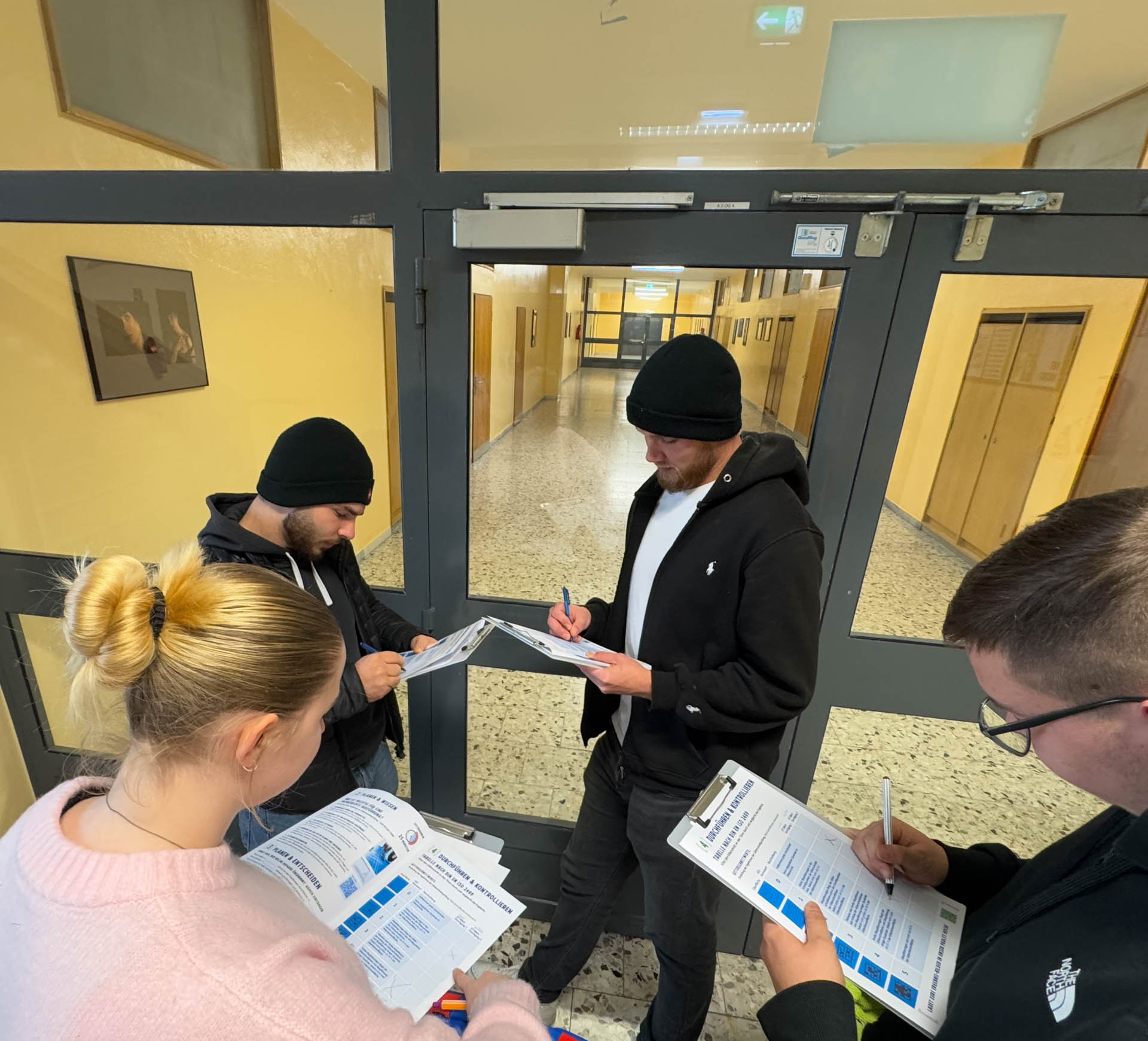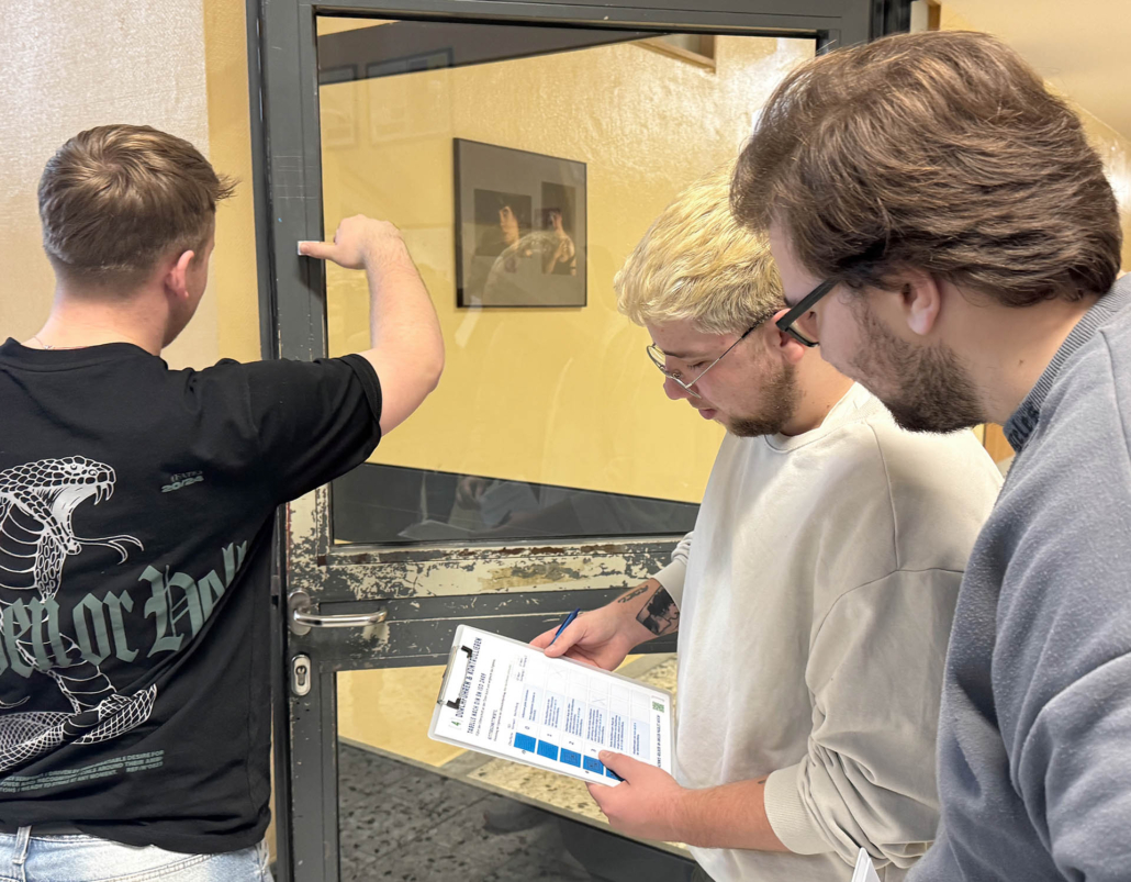 Die Ergebnisse hielten die Lernenden in Prüfberichten fest, diskutierten ihre Beobachtungen und leiteten eigenständig Empfehlungen für eine fachgerechte Instandsetzung ab. So wurde deutlich: Präzises Messen und Prüfen ist ein entscheidender Schritt, bevor im Malerhandwerk überhaupt der Pinsel zum Einsatz kommt.