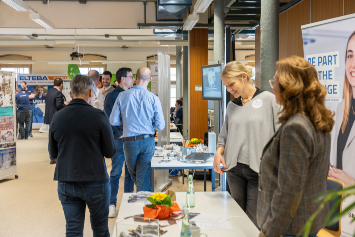 „Ich bin sicher, dass unsere Firmenmesse auch in Zukunft gut besucht sein wird“, meint der Leiter der Fachschule Maschinenbautechnik, Bernhard Fleischer. „Für unsere angehenden Techniker im ersten Studienjahr ist dies ein unverzichtbares Angebot, niederschwellig mit den Firmen in Kontakt zu treten und für ihre Projektarbeiten Partner zu gewinnen. Unsere Absolventen des zweiten Jahres schauen schon über die demnächst anstehenden Prüfungen hinaus. Sie bekommen hier ein Gefühl dafür, wie wertvoll ihre Ausbildung bei uns ist.“ Und die teilnehmenden Unternehmen? Sie freuen sich über die Chance, so viele Interessenten von ihren Angeboten überzeugen zu können.