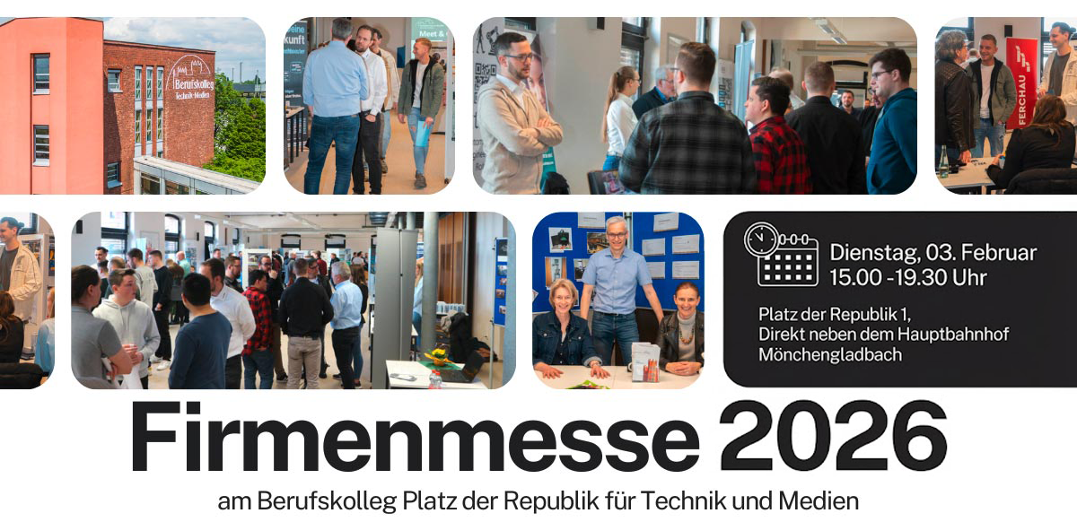Willkommen zur Firmenmesse 2026 am Berufskolleg Platz der Republik für Technik und Medien!