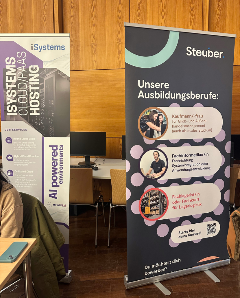 Aber auch einige ITAs der Oberstufe, die jetzt immer Sommer ihre Ausbildung bei uns beenden, sind gekommen. Sie suchen hochqualifizierte Ausbildungsplätze, in denen sie ihre bereits vorhandenen Kenntnisse nutzen und ergänzen können. Und die Firmenvertreter? „Einige Firmen haben ihre Mitarbeiter geschickt, die ebenfalls bereits bei uns die ITA-Ausbildung absolviert haben und nun dort einen Job gefunden haben. Diese jungen Mitarbeiter wissen genau, was unsere Schüler können und gehen offen auf sie zu- eine echte WIN-WIN-Situation“, bestätigt Frau Legler.