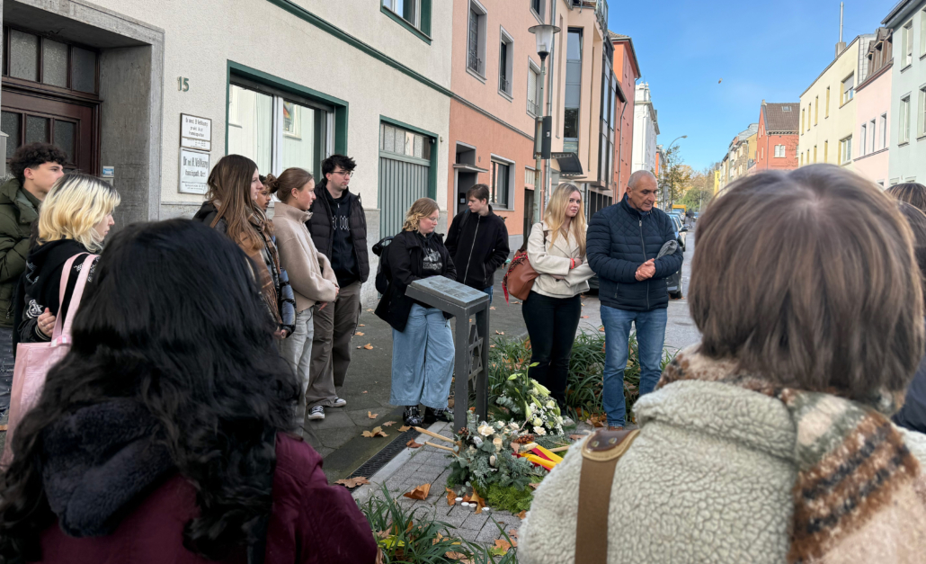 Im Rahmen des Politik Unterrichtes, hat sich die Klasse BiF12A gemeinsam mit ihrem Politiklehrer Ali Bostanci mit der Reichspogromnacht vom 9./10. November 1938 beschäftigt und hat das Synagogen-Denkmal auf der Hilde Shermann-Zander Straße und das Holocaust Denkmal am Europaplatz besucht.