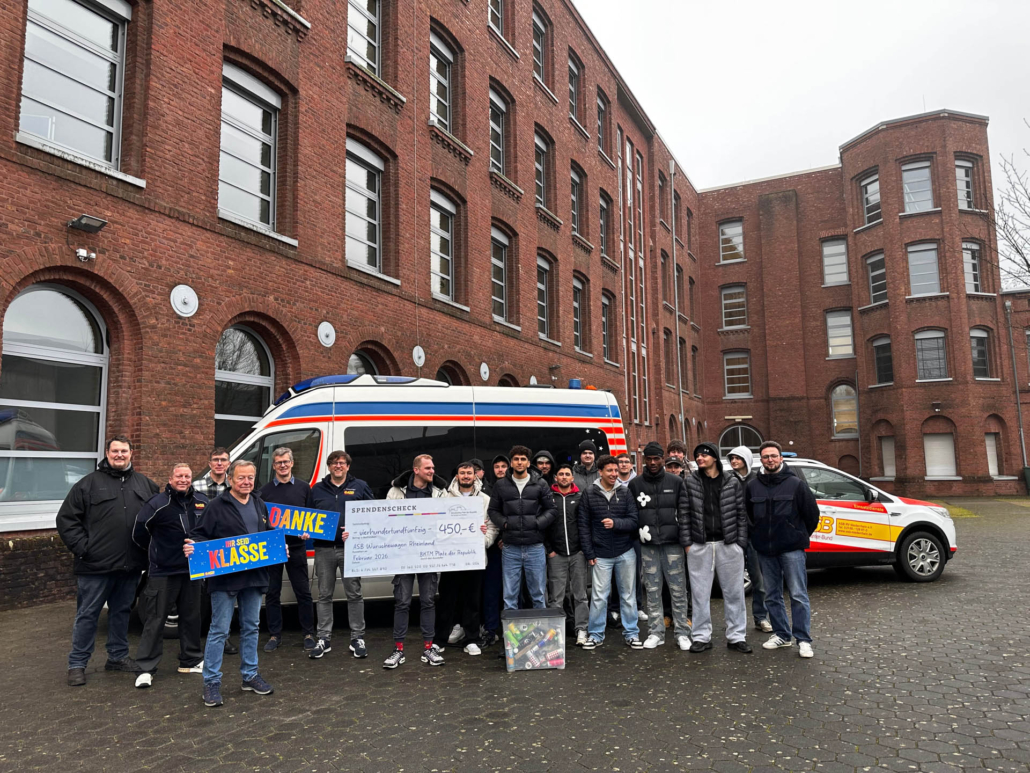 „Ich bin wirklich sehr stolz auf die Schülerinnen und Schüler der Berufsschule Metallbau/Konstruktionsmechanik“, erläutert Bildungsgangleiter Benedikt Gau. „Seit zwei Jahren sammeln alle gemeinsam ganz konsequent das im Schulalltag anfallende Flaschenpfand für den guten Zweck.“