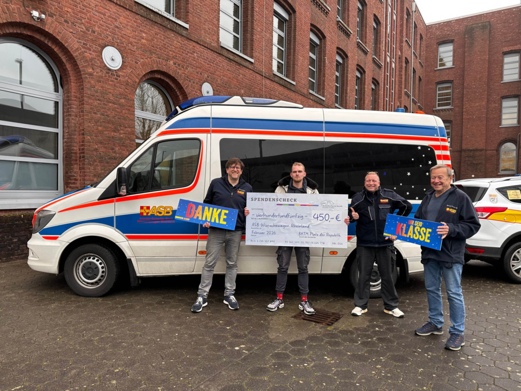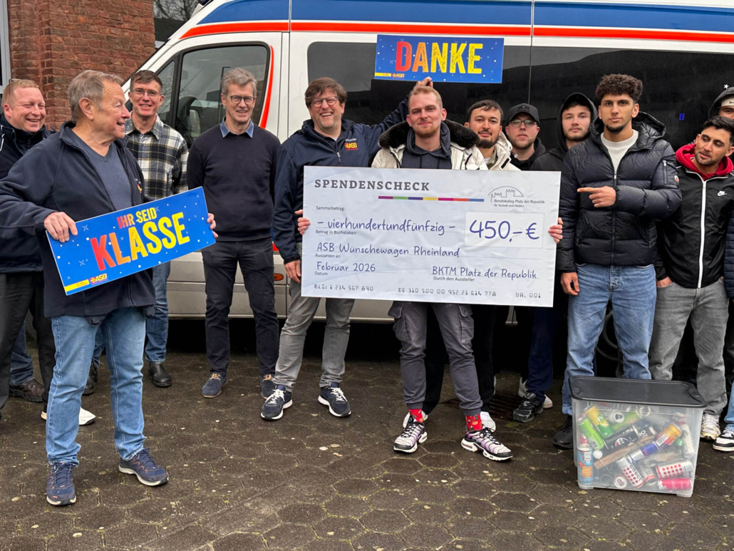 Aus vielen kleinen Beträgen ist so eine Unterstützung geworden, die dort ankommt, wo sie gebraucht wird– beim ASB- Wünschewagen Rheinland. Dieser ist bei vielen Menschen im Rheinland bekannt und ermöglicht echte Herzensmomente. Der Wagen ist ein rein ehrenamtlich getragenes und ausschließlich durch Spenden finanziertes Projekt. Er erfüllt Menschen in der letzten Lebensphase einen besonderen Wunsch und bringt sie gemeinsam mit Familie oder Freunden noch einmal an einen Wunschort. Möglich wird das durch einen speziell ausgestatteten Krankentransportwagen und ein geschultes Team. Ob ein Ausflug ans Meer, ein Besuch bei den Enkelkindern oder ein Tag im Stadion: Der Wünschewagen macht solche wertvollen Momente möglich.